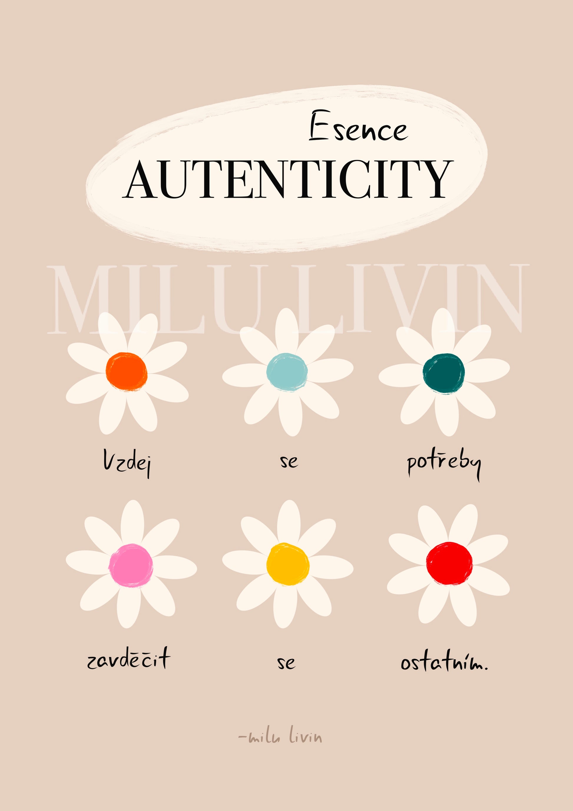 Jemná ilustrace kopretin jako připomínka, že být autentická znamená naslouchat vlastním potřebám - ne očekáváním druhých.