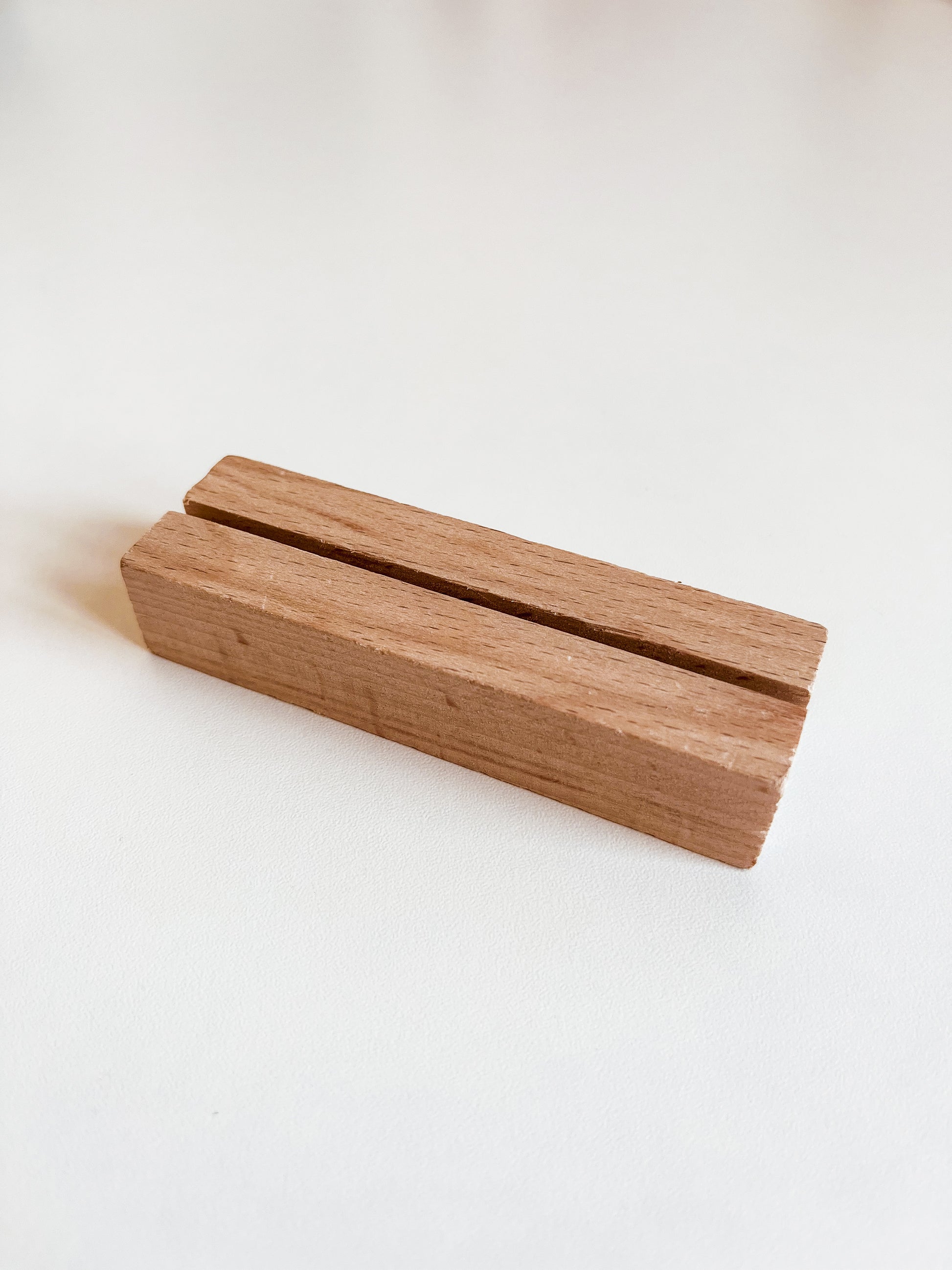 Jednoduchý dřevěný stojánek z bukového dřeva slouží jako místo pro tvůj oblíbený tisk, kartu s poselstvím nebo každodenní připomínku.