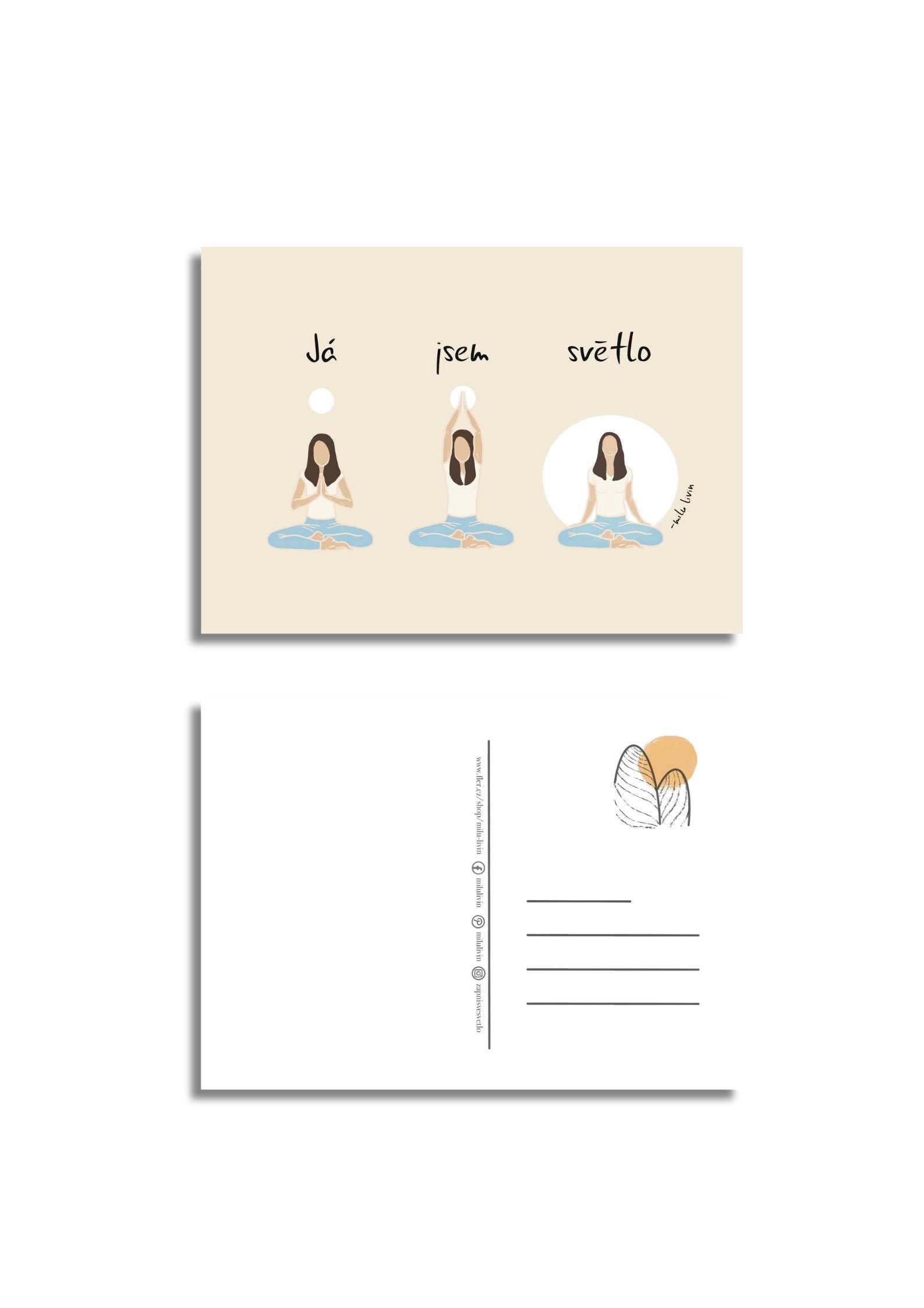 Jemná pohlednice s autorskou ilustrací a poselstvím "Jsem světlo". Vhodná k darování, psaní i vystavení, třeba jako připomínka vlastního světla.