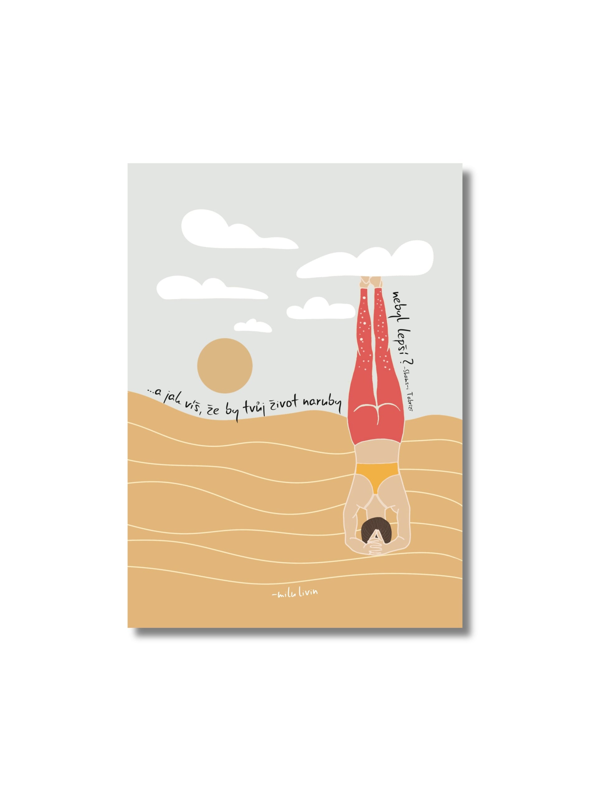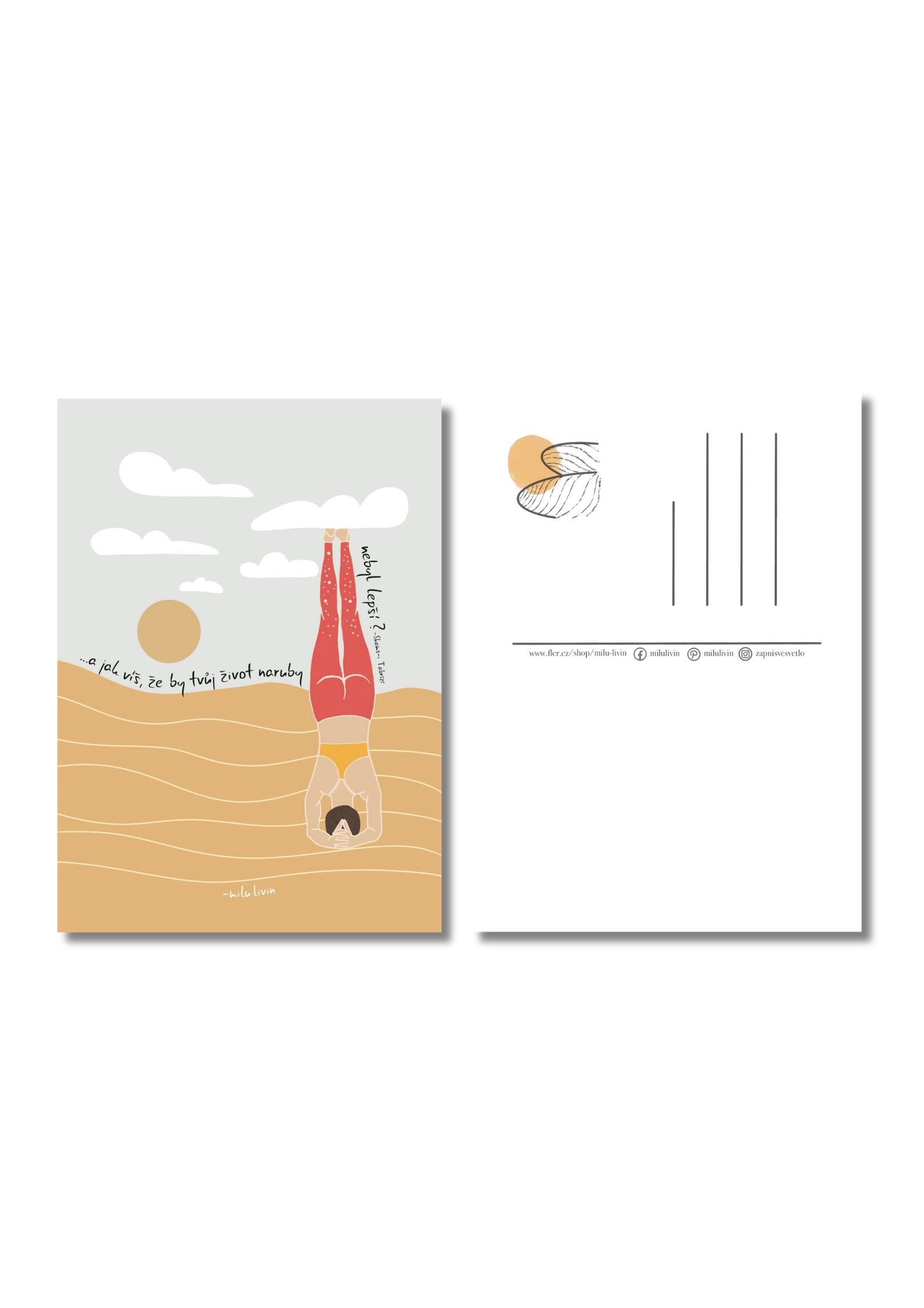 Pohlednice s autorskou ilustrací a myšlenkou o nových úhlech pohledu.