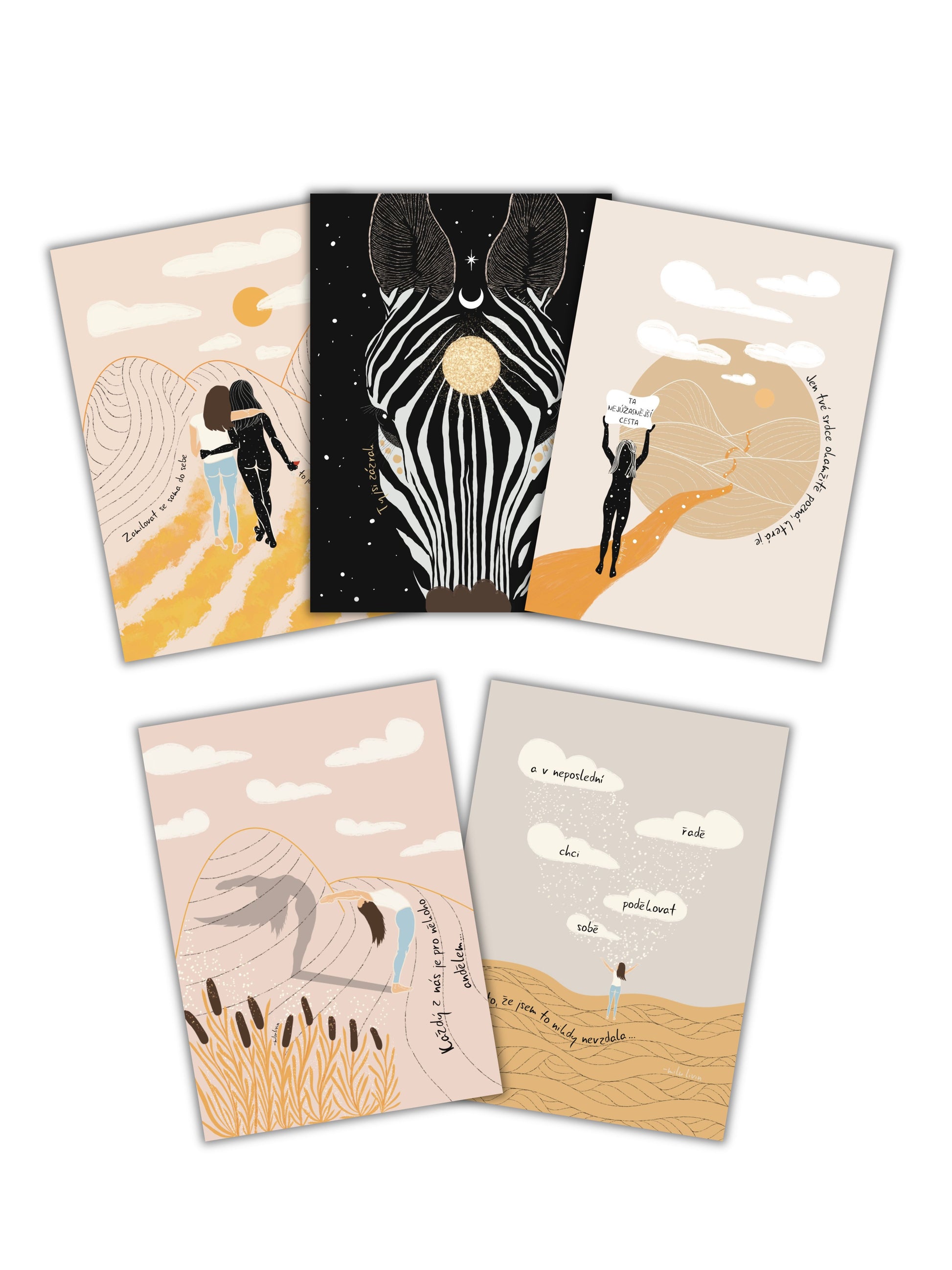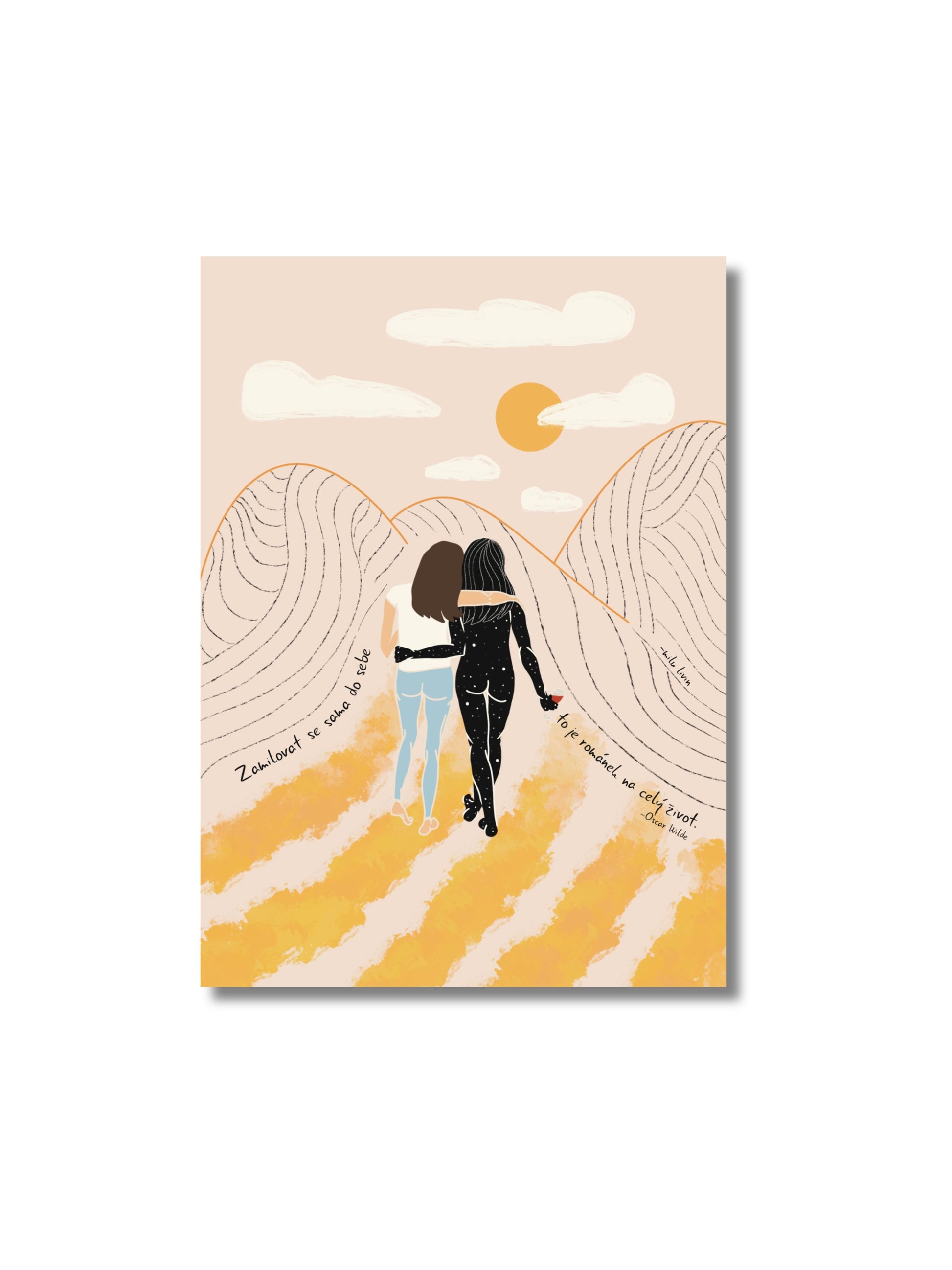 Kolekce jemných ilustrací a citátů, které podporují vnitřní vztah k sobě.