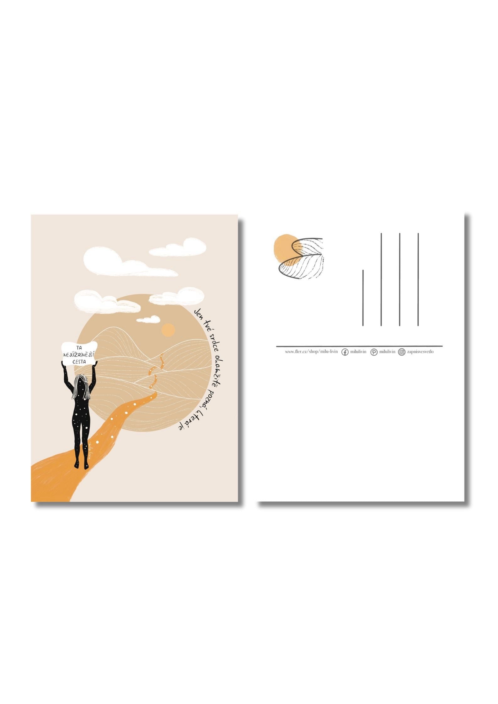Jemná pohlednice s autorskou ilustrací a poselstvím "Jen tvé srdce okamžitě pozná, která je ta nejúžasnější cesta." Vhodná k darování, psaní i vystavení - třeba jako připomínka, že srdce je náš kompas.
