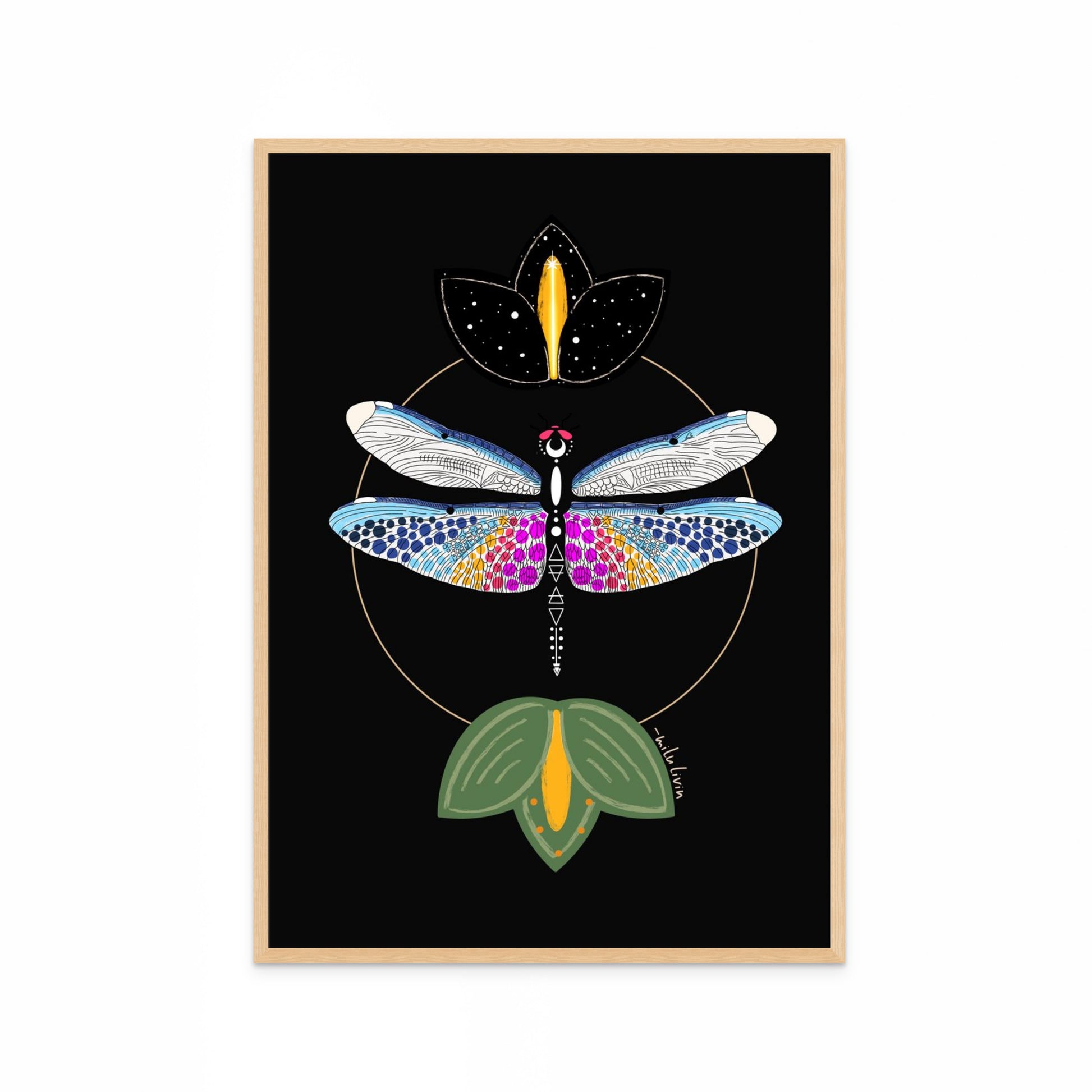 Jemná ilustrace vážky - symbolu proměny, rovnováhy a vnitřní síly. Může být každodenní připomínkou, že změna je přirozená a často uzdravující. Vhodná k vystavení, do deníku, jako dárek nebo osobní talisman.